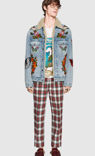Il y a 5 ans Gucci semblait old-fashioned, mais un coup de vent est passé par là. L'ascendance des graphismes asiatiques mettent en valeur la soie et les couleurs vives. Alessandro Michel, Directeur de la création de Gucci, rends la combinaison Jean & Broderie, ultra-expressive finalement presque animale...